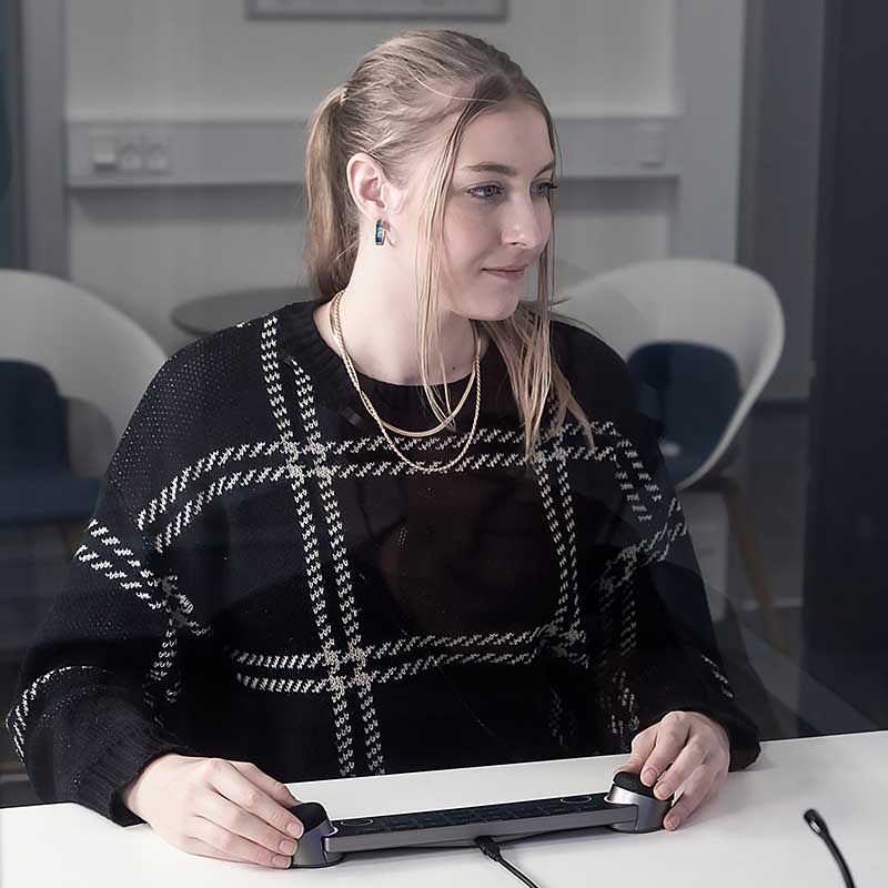 El Teclado del audiómetro es un teclado dedicado para Affinity Compact, Affinity y Equinox de Interacoustics. Fusiona la sensación de una audiometría autónoma con la seguridad de los datos y la eficiencia de trabajar con un PC. El diseño sencillo y ergonómico ayuda a mantener la atención en el paciente, con nueve teclas F personalizables para un flujo de trabajo personalizado. Con la superficie de silicona fácil de limpiar del Teclado de audiómetro y su diseño elegante, es una solución perfecta e higiénica que encajará sin problemas en su mesa de trabajo.
